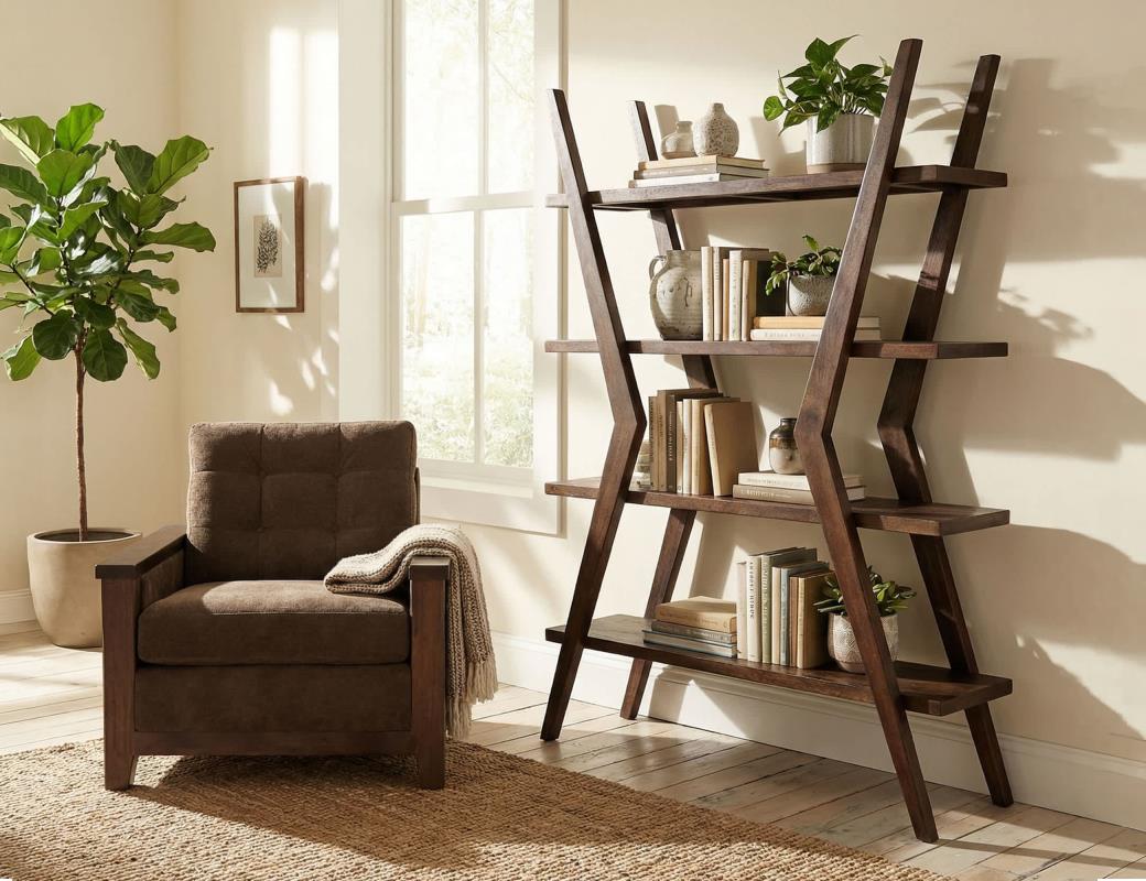 Introducing the Moka Bookcase, a stunning, relaxed modern furniture piece crafted from durable mango wood and finished with a rich, hand-applied brown tone. Perfect for organizing your home office or living room, the Moka Bookcase provides spacious shelving to accommodate everything from books and decor to collectibles and office essentials. Designed for those who seek both aesthetic appeal and practical storage, this solid wood 4-Shelves, X-Shaped Étagère Bookcase answers the question of how to display items elegantly while maintaining an orderly environment. Its versatile design suits multiple settings, whether you need a stylish bookshelf for your study or a distinctive storage solution for your home.