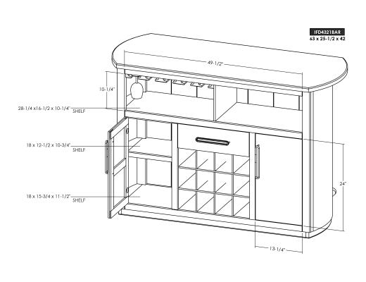 1-Drawer, 2-Door Bar with Wine Grid